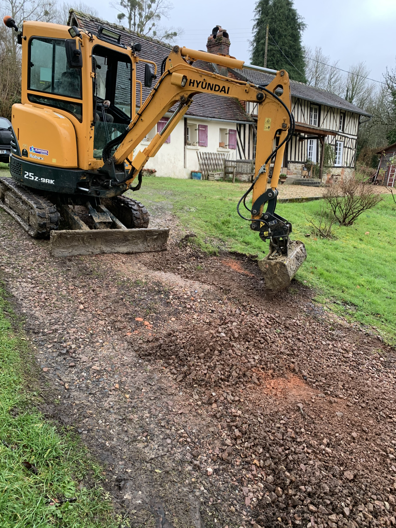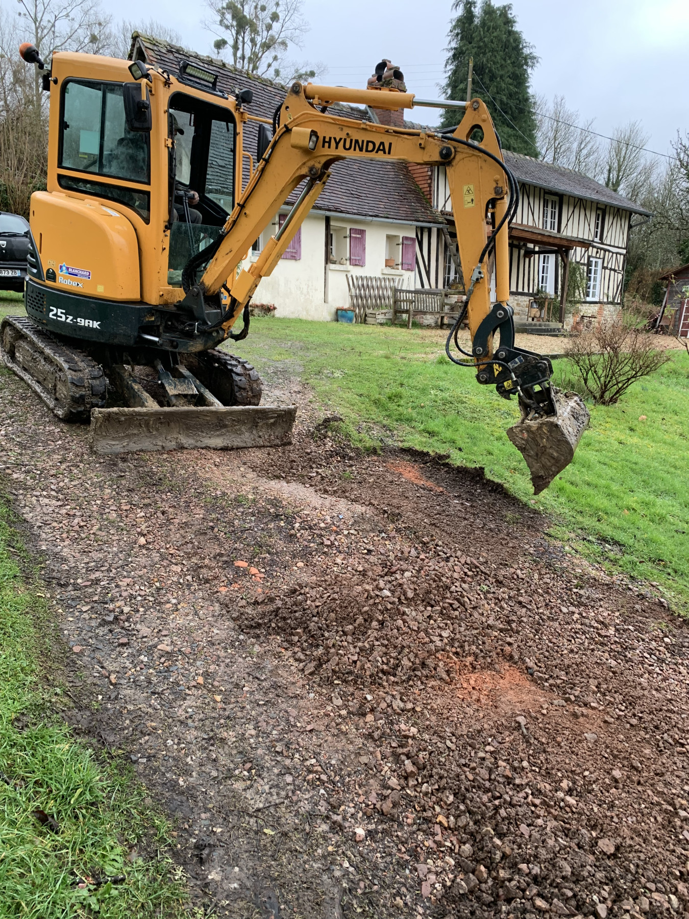 Une remise du terrain à plat à été nécessaire pour pouvoir la travailler pour l’arriver du nouveau cailloux.